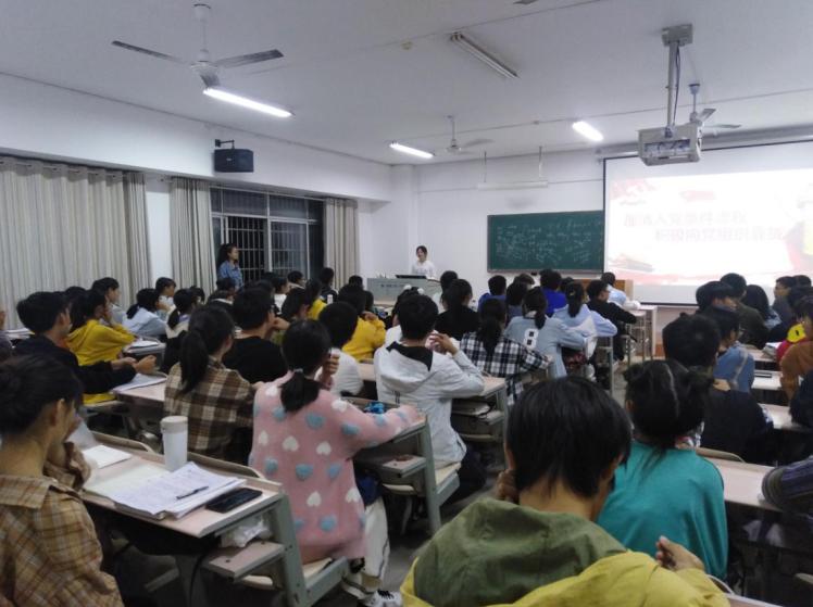 本站讯 10月31日晚19:00于5307、5310、5312,学生支部支委进新生课堂讲“入党”。19级全体新生参加。此次活动由支部副书记、宣传委员、纪检委员主讲。支委以“厘清入党条件流程,积极向党组织靠拢”为题,分别从“党员发展流程及条件”“入党材料撰写要求”进行详细阐述。