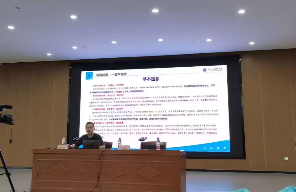 杨育球老师立足高中数学课程标准,深入阐释数学学科核心素养内涵,清晰梳理了从“四基”、“四能”到“六素养”及“情感态度价值观”的课程目标演进脉络。他结合丰富经验,系统剖析了教学设计、课堂实施与教学评价的关键要点与实操策略,为在座师范生未来从教提供了宝贵的专业指引。
