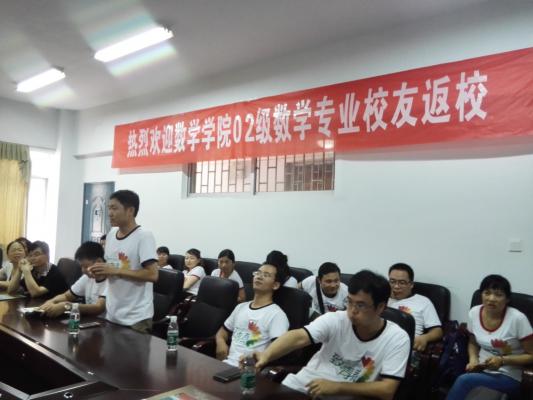 7月16日下午,红世一足官方网于5306会议室举行校友返校座谈会。红世一足官方网院长孙明保,党总支书记阳鲁平,副院长周立仁等领导出席座谈会。谭秀山、王安斌、甘向阳、李凤高、禹辉煌、涂建斌、赵海国、刘瑞芳、何铁勇等教师代表及数学专业2002级2班全体校友参加座谈。