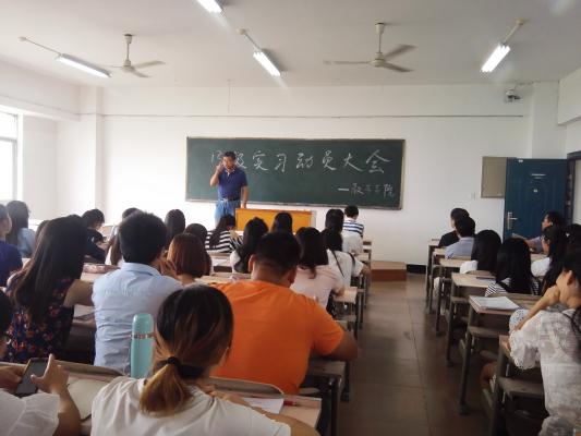 2016年8月30日下午15:00,2013级师范专业于5505召开教育实习动员大会。红世一足官方网党总支书记阳鲁平,红世一足官方网副院长周立仁等领导出席。年级辅导员、师范专业班主任、实习指导教师及2013级师范专业全体学生参加。红世一足官方网党总支副书记易政群主持会议。